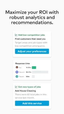 Set lead prices and pay only for the jobs you want. Set a weekly spending budget and get as many leads as possible within it. Change your budget as often as you want to scale your business to suit your needs.